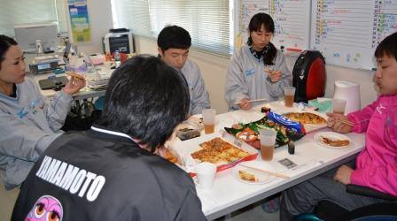 メニューはお寿司・ピザ・センター大河さん作イカの沖漬け・から揚げポテトでした。